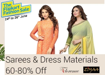 Flipkart.com is spurting an amazing offer for you, here you can Get Minimum 60% - 80% OFF on Sarees and Dress Materials, starts at Rs.179 and also get Extra 10% Off Via SBI Cards connected Minimum purchase of Rs.1999, To get this offer, here are the stairs :-